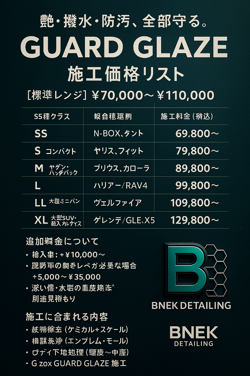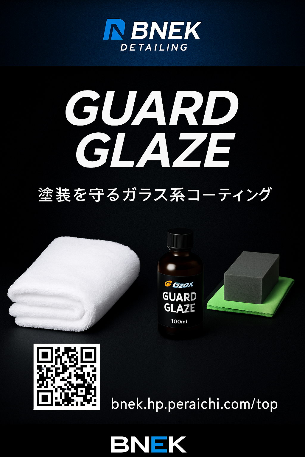 『艶を“守り”、光を“纏う”。』『瞬間で濡れ艶、長時間ガード。』『GUARD GLAZE — あらゆる輝きをブーストする最終兵器。』